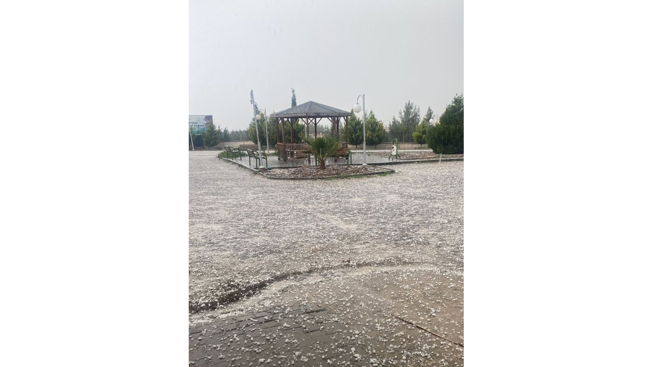 Adıyaman'ın Samsat ilçesinde fındık büyüklüğünde yağan dolu ilçeyi beyaz örtüyle kapladı.