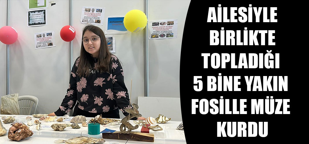 Karaman’da ortaokul öğrencisi 12 yaşındaki Bahar Alime Eren, ailesiyle birlikte topladığı yaklaşık 5 bine yakın fosille, fosil müzesi kurdu.