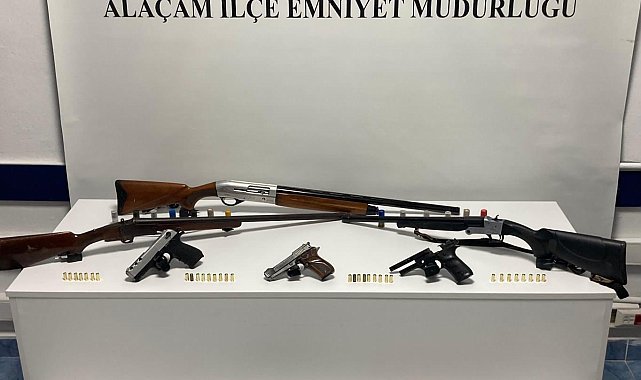 Samsun'un Alaçam ilçesinde polis ekipleri tarafından düzenlenen operasyonda, ruhsatsız silahlar ve çalıntı motosiklet ele geçirildi. Olayla ilgili 2 kişi hakkında adli işlem başlatıldı.