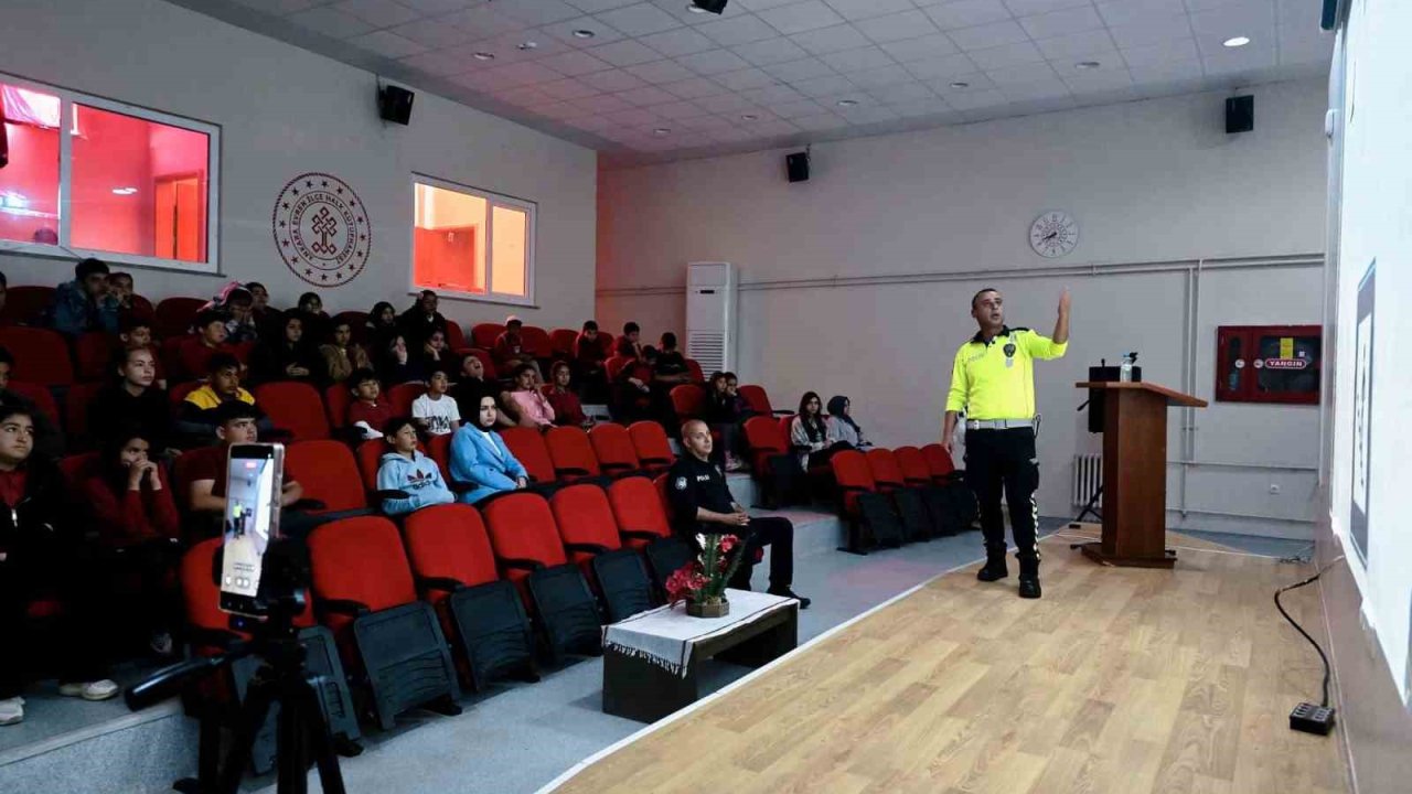 Ankara'nın Evren ilçesinde Trafik Büro ekipleri, Karayolu Trafik Haftası'nda öğrencilere trafik eğitimi verdi.