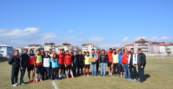 Korkuteli Belediyespor antrenmanını ziyaret eden Yaylalı akrepler tribün grubu futbolculara talkı ikram etti.