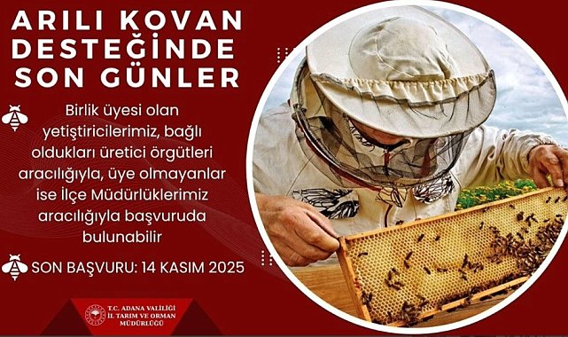 Adana İl Tarım ve Orman Müdürlüğü, arılı kovan desteği almak isteyen üreticiler için 'son gün' çağrısı yaptı.Adana'da arı üreticileri için çeşitli destekler veriliyor. Adana İl Tarım ve Orman Müdürlüğü, arılı kovan desteği almak isteyenler için yaptığı açıklamada, son başvuru tarihini 14 Kasım 2025 olarak açıkladı. Başvurularını zamanında yapan üreticiler, 21 Kasım 2025 tarihinde gerçekleştirilecek tespit işlemleri sonrasında desteklerden faydalanabilecek.Destek programı kapsamında, birlik üyesi yetiştiriciler, bağlı bulundukları üretici örgütleri aracılığıyla başvuru yapabilecek. Üye olmayan üreticiler ise doğrudan ilçe tarım müdürlükleri üzerinden başvuruda bulunabilecek.Adana İl Tarım ve Orman Müdürlüğü, üreticilere çağrıda bulunarak sürenin son gününe kadar işlemlerini tamamlamaları gerektiğini hatırlattı.