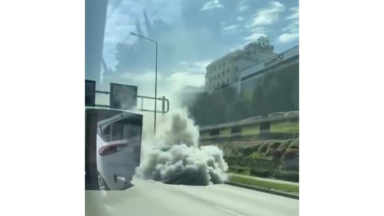 Bursa'nın Osmangazi ilçesinde motor kısmından arıza yapan bir araç, dumanlar saçarak trafikte panik oluşturdu.