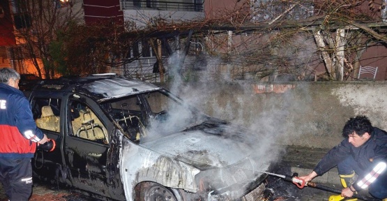 Evin önündeki aracı kundakladılar