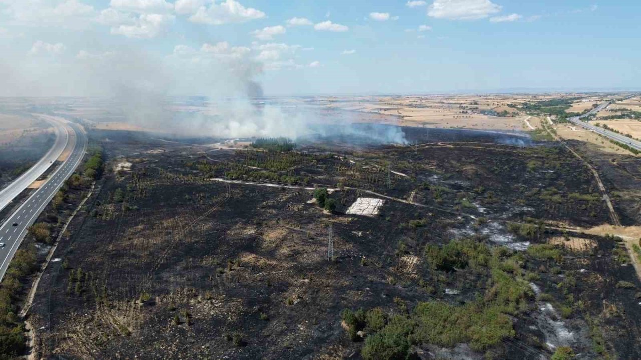 Kırklareli'nin Babaeski ilçesinde TEM Otoyolu çevresinde çıkan yangına havadan ve karadan müdahale ediliyor.