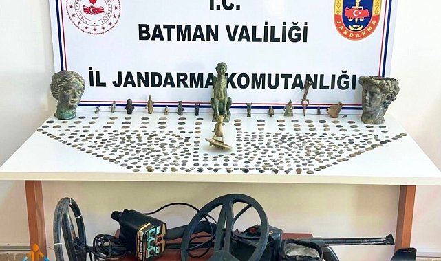 Batman İl Jandarma Komutanlığı ekiplerince düzenlenen operasyonda, Roma, Bizans, Osmanlı ve çeşitli dönemlere ait çok sayıda tarihi eser ele geçirilirken 1 şüpheli gözaltına alındı.Edinilen bilgilere göre, İl Jandarma Komutanlığı Kaçakçılık ve Organize Suçlarla Mücadele (KOM) ile İstihbarat Şube Müdürlüklerince "Anadolu Mirası Operasyonları" kapsamında yürütülen planlı çalışma sonucu, Çamlıca Mahallesi'nde M.K. isimli şahsın evinde arama yaptı.Yapılan aramada 802 adet sikke, 29 adet obje, 2 adet büst, 1 adet heykel ve 2 adet dedektör ele geçirildi. Batman Müze Müdürlüğü tarafından hazırlanan ekspertiz raporunda, ele geçirilen eserlerin Roma, Helenistik, Bizans, Osmanlı, Sasani, İslami ve Ermeni dönemlerine ait kültür varlıkları olduğu tespit edildi. Olayla ilgili 1 şüpheli hakkında adli işlem başlatıldı.