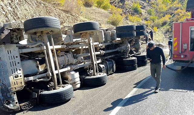 Batman'da virajı alamayan asfalt yüklü kamyon devrildi