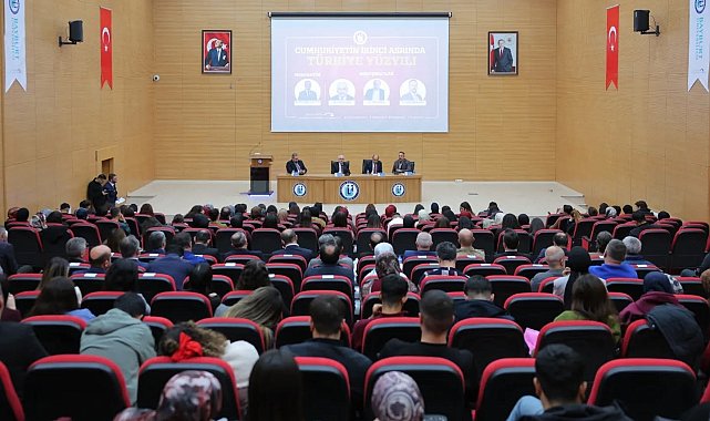 Bayburt Üniversitesi tarafından 'Cumhuriyetin İkinci Asrında Türkiye Yüzyılı' başlıklı panel gerçekleştirildi. Doç. Dr. Turgay Yerlikaya'nın moderatörlüğünde düzenlenen programa yoğun katılım oldu.