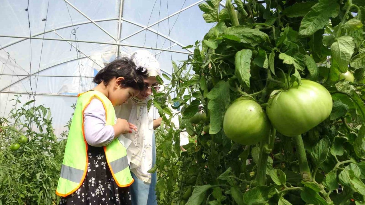 Bayburt'ta lise öğrencilerinin oluşturduğu serada özel eğitim öğrencileri sebze hasadı yaptı.
