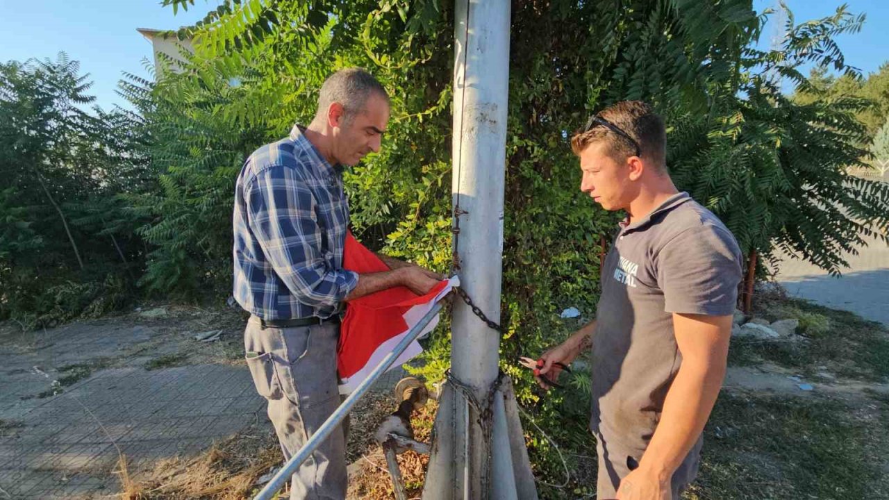 Edirne'de boş bayrak direği, duyarlı vatandaşın girişimiyle yeniden Türk bayrağıyla buluştu.