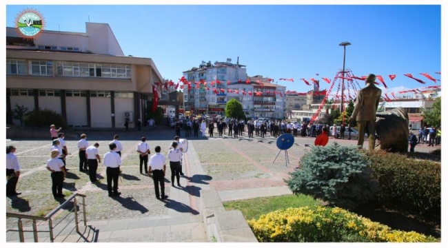 Valilik Meydanı Atatürk Anıtı önünde gerçekleşen törende valilik çelengini Sinop Valisi Erol KARAÖMEROĞLU'nun sunmasının akabinde, Belediye Başkanlığı çelengini Belediye Başkanımız Barış AYHAN sundu.