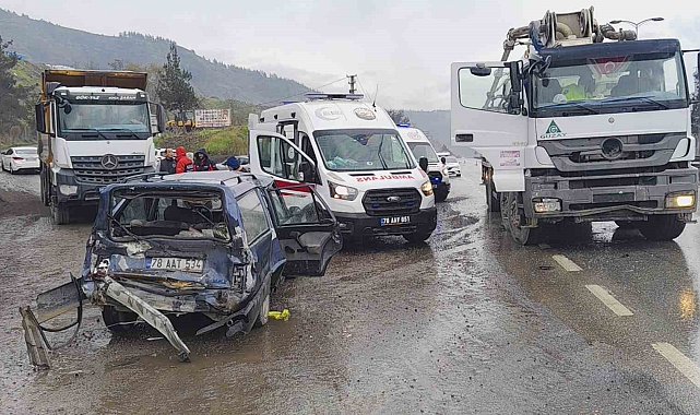 Karabük'te beton mikseri ile otomobilin çarpışması sonucu 1'i çocuk olmak üzere 5 kişi yaralandı.