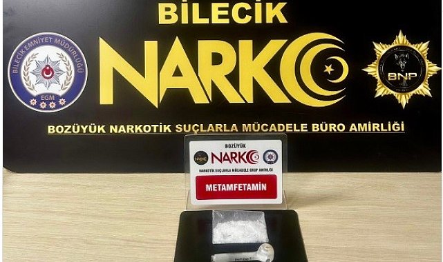 Bilecik'te yapılan asayiş kontrollerinde bir kişinin üzerinden uyuşturucu madde ele geçirildi.Bilecik'in Bozüyük İlçe Emniyet Müdürlüğüne bağlı ekipleri ilçe merkezinde yaptıkları bir asayiş uygulamasında bir kişiden şüphelendi. Şahsın üzerinde yapılan aramada metamfetamin ve bong aparatı ele geçirildi. Şahıs ekiplerce gözaltına alınarak, Bozüyük İlçe Emniyet Müdürlüğüne götürüldü.