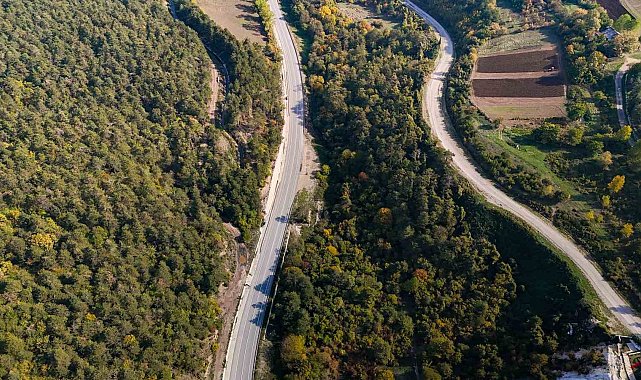 Bolu-Mudurnu kara yolunda sonbahar renkleriyle oluşan manzaralar, sürücülere görsel bir şölen sunuyor.