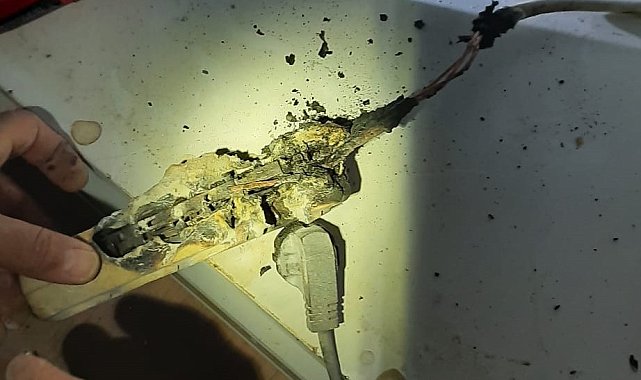 Burdur'da prize takılan uzatma kablosu yangına sebep oldu