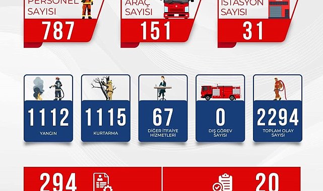 Bursa İtfaiyesi, gece gündüz demeden çalışmalarını sürdürerek Bursalıların yanında oldu.Bursa'da 31 istasyonda 787 personel ve 151 araçla hizmet veren İtfaiye Daire Başkanlığı ekipleri, havaların sıcak gittiği Eylül ayında da yangından yangına koşmaya devam etti.Geride bıraktığımız ayda Bursa Büyükşehir Belediyesi İtfaiye Daire Başkanlığı ekipleri bin 112 yangına, bin 115 arama kurtarma, 67 diğer itfaiye hizmetleri olmak üzere 2 bin 294 olaya müdahale etti.Yapılan açıklamada ayrıca 3 bin 958 kişiye eğitim, olaylarla alakalı 294 itfaiye raporunun hazırlandığı ve 20 denetim gerçekleştirildiği ifade edildi.