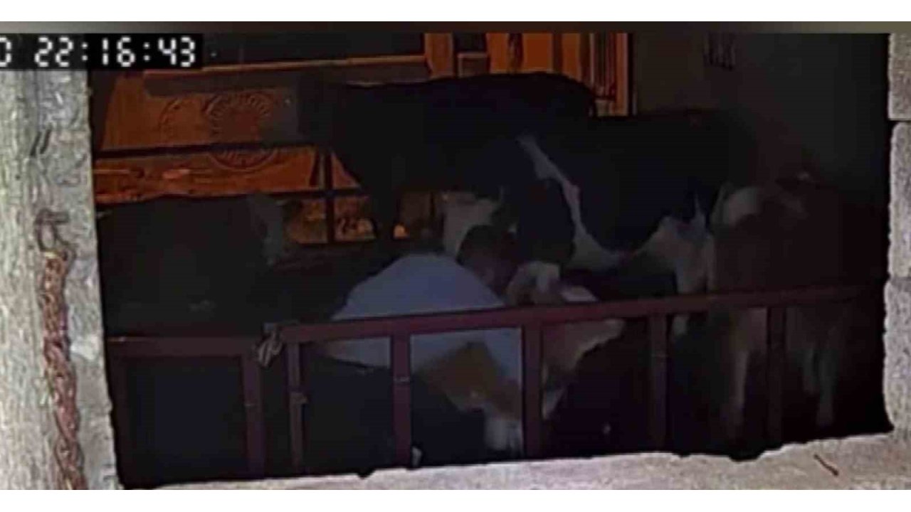 Adıyaman'da, bir buzağının kucaklanarak çalınma anları güvenlik kameralarına saniye saniye yansıdı.