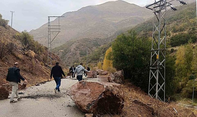 Van'ın Çatak ilçesinde dünden bu yana etkili olan yağışlar nedeniyle dağlık alandan kopan kaya parçaları yola düştü.