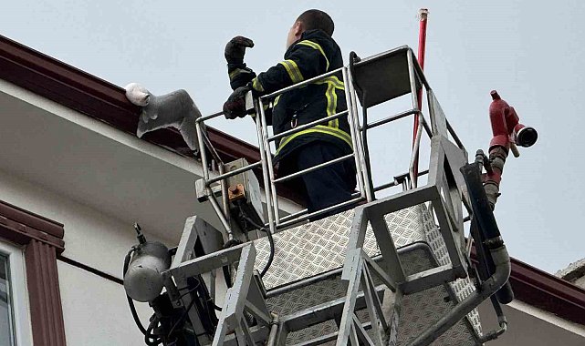 Çatıda sıkışan martıyı itfaiye kurtardı