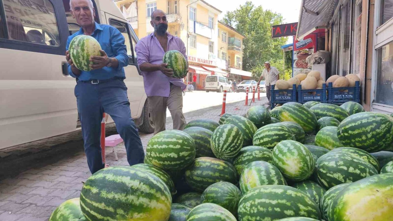 Tunceli'nin Çemişgezek ilçesine bağlı Kıraçlar köyünde su verilmeden yetiştirilen ve "Hıdıroz" ismi verilen organik karpuz tezgahtaki yerini aldı.