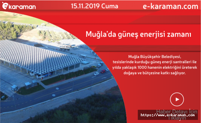 Türkiye’de güneşlenme süresi en yüksek illerden biri olan Muğla’da, Büyükşehir Belediyesi tesislerinde güneş enerji santralleri kurmaya, doğayı ve bütçesini korumaya devam ediyor. Büyükşehir Belediye tesislerinden Menteşe Terminal Türkiye’de ilk yapıya entegre GES 290,4 kwh kurulu güç, Menteşe Mezbaha Tesisi GES 105,4 kwh kurulu güç, Konacık İdari Bina çatısı GES 52,4 kwh kurulu güç ve yapımı devam eden Bodrum Terminal Çatısına kurulumu yapılacak GES 640 kwh güce sahip olacak ve Büyükşehir Belediyesinin tüm tesisleri, 1067 kwh kurulu güce sahip olacak. Tüm güneş enerji santrallerinin sorunsuz çalışması ile Muğla Büyükşehir Belediyesi yılda yaklaşık 1000 hanenin elektrik tüketimine eşit enerjiyi güneşten karşılayacak. Yılda 1.400.000 KWH enerji üretecek tesisler, 1000 hanenin elektrik üretimi yanında 30 ton kağıdın geri dönüşümünü sağlayacak ve 840 ton Co2’nin atmosfere salınımını engelleyecek. Aynı zamanda belediye bütçesine de büyük katkı sağlayan güneş panellerinin, Büyükşehir Belediyesi tarafından bundan sonra yapılacak binalarda da kullanılması planlanıyor.