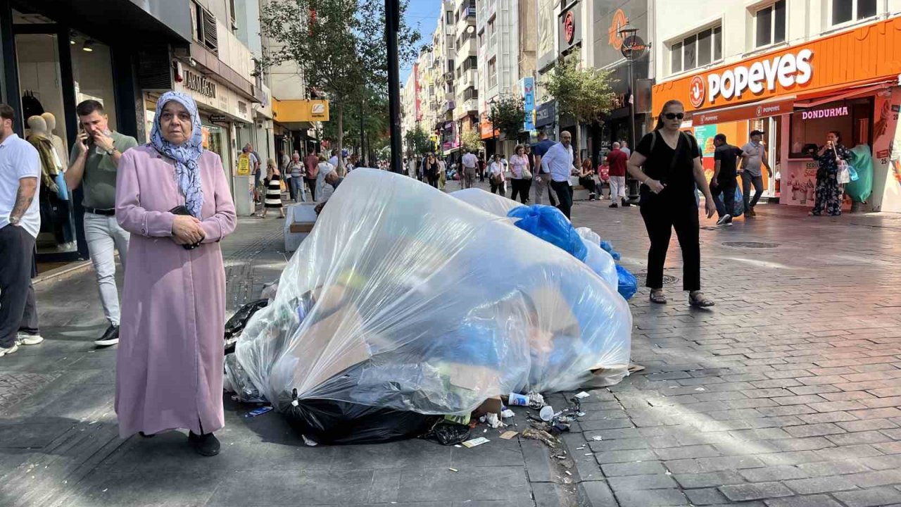 İzmir'in Karşıyaka ilçesinde işçilerin maaşlarını alamadıkları gerekçesiyle başlattığı grev, çöp toplama hizmetlerinin aksamasına neden oldu.