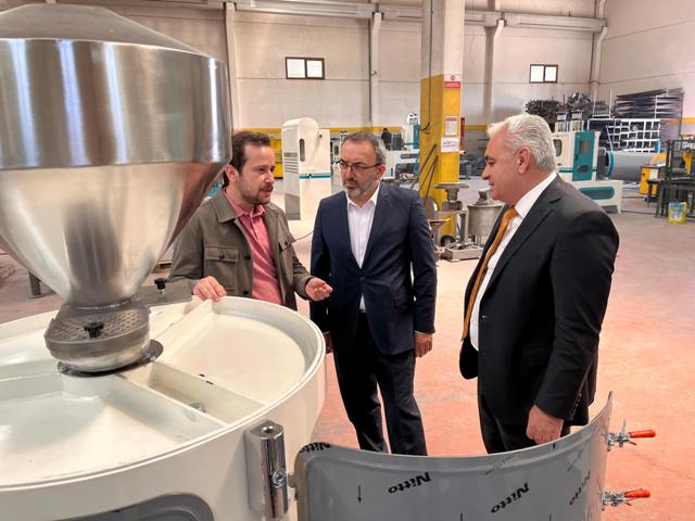 Karaman Defterdarı Aliaddin Karpınar ve Grup Müdür V. Kemal Gökbayrak, Karaman Toprakçılar Makina Yönetim Kurulu Üyesi Sinan Toprakçı ile Grafik Tasarım Uzmanı Esra Toprakçı Vural'ı işletmelerinde ziyaret etti.