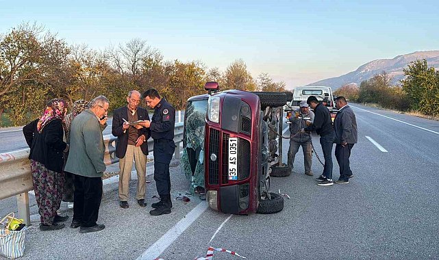 Afyonkarahisar'da kontrolden çıkarak bariyerlere çarpıp devrilen hafif ticari araçta şans eseri ölen ya da yaralanan olmadı.
