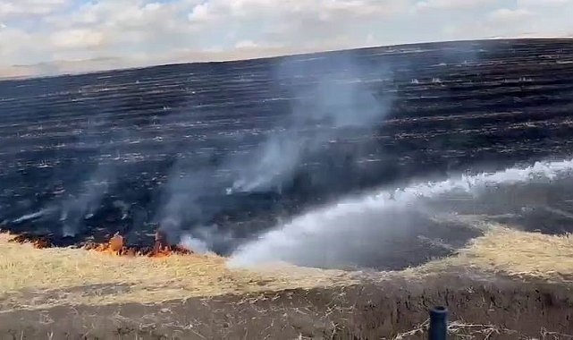 Diyarbakır'ın Silvan ilçesinde onlarca dönümlük alanda anızlar alev aldı.