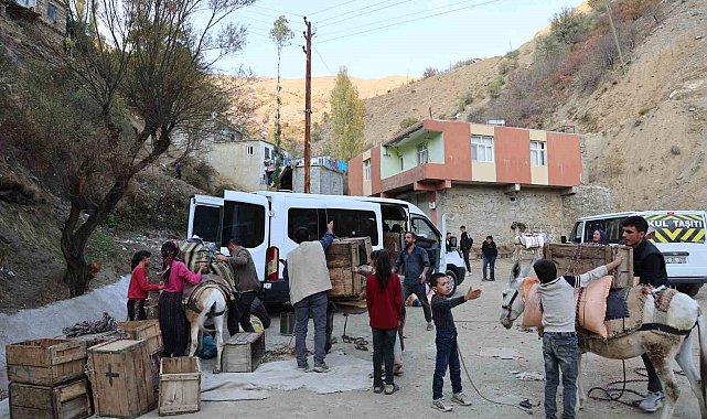 Diyarbakır'ın kırsal mahallesinde yükler eşeklerle evlere götürülüyor