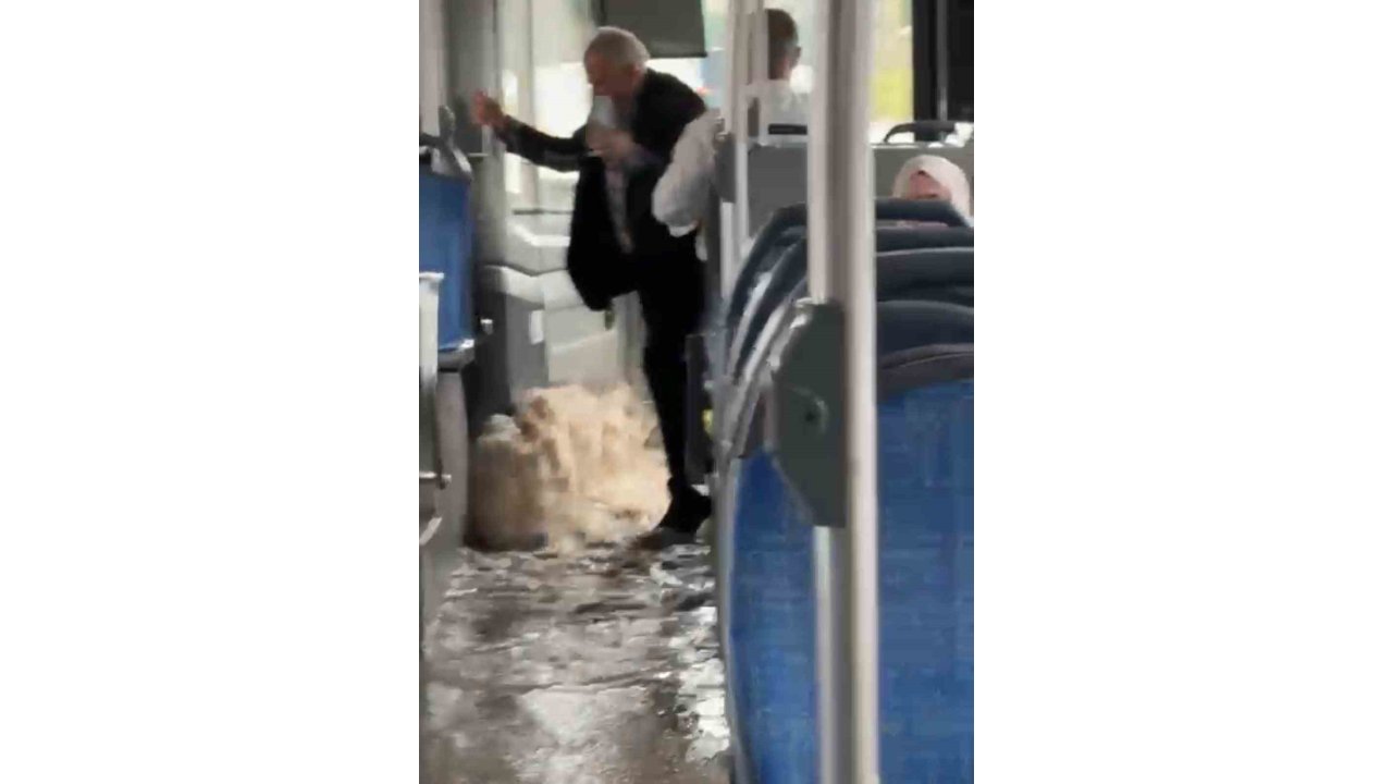 Diyarbakır'da kısa süreliğine dolu ve sağanak yağış etkili oldu. Sağanak yağış nedeniyle su birikintisi halk otobüsüne taştı.