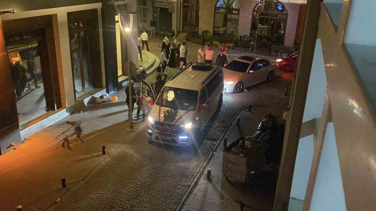 Eskişehir'de bir düğün konvoyundaki kalabalık grup arasında gerginlik yaşanırken, bağrışma sesleri sokağı inletti.Olay, dün akşam saat 23.40 sıralarında İstiklal Mahallesi'nde Alev Sokak ile Kabaağaç Sokak'ın kesişiminde bulunan bir otelin önünde meydana geldi. Edinilen bilgilere göre, bölgedeki düğün konvoyuna dahil olan kalabalık grup arasında henüz bilinmeyen sebeple tartışma çıktı. Gergin anların yaşandığı tartışma sırasında bağrışma sesleri sokağı inletirken, bazı vatandaşlar da kavga çıkmasını önlemeye çalıştı. Birkaç dakika boyunca devam eden hararetli tartışmanın ardından olaya dahil olan taraflar, araçlara binerek bölgeden yerinden ayrıldı. O anlar saniye saniye kayıt altına alındı.