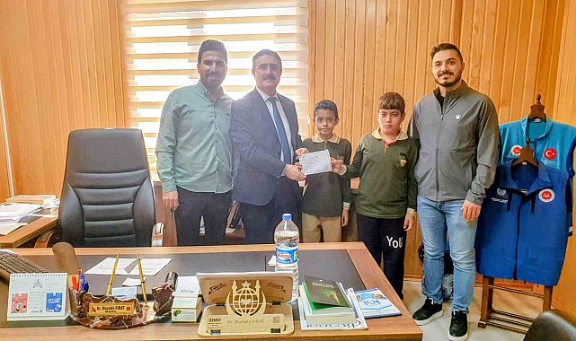 Elazığ'da ortaokulu öğrencileri Filistin'e destek için aralarında topladıkları parayı Türkiye Diyanet Vakfı'na verdi.