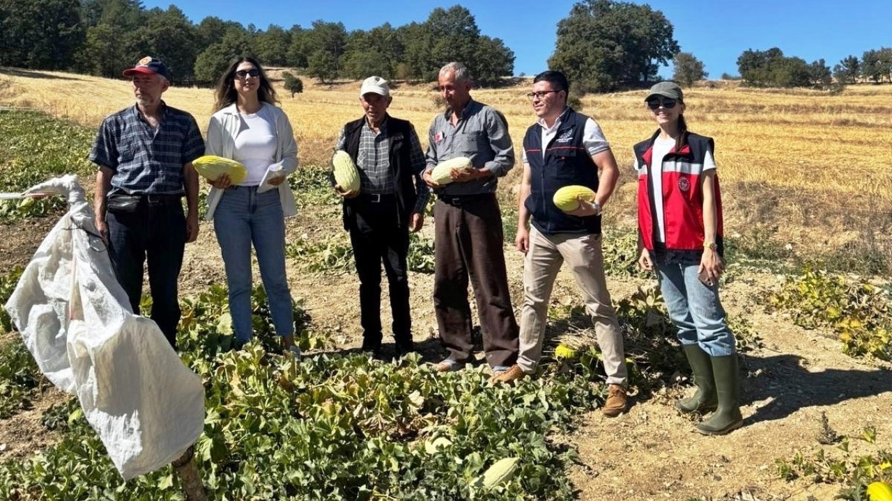 Kütahya'nın Emet ilçesi Göncek köyü'nde "Organik Göncek Kavunu" projesi çerçevesinde sertifikasyon işlemleri için proje paydaşlarına ait kavun ekili tarlalardan numuneler alındı.