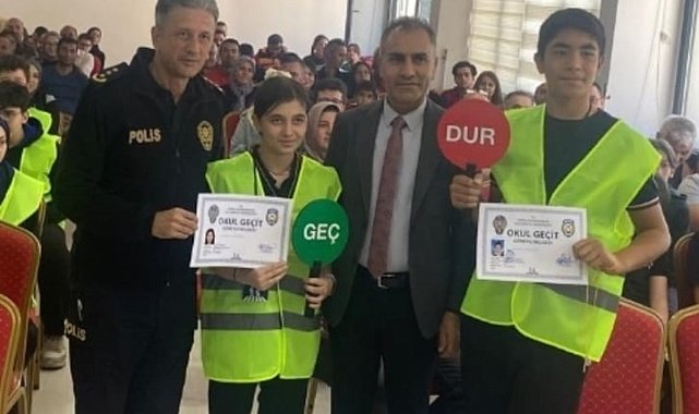 Konya'nın Ereğli ilçesinde, öğretmen, öğrenci, veli ve okul geçit görevlilerine trafik eğitimi verilerek görevlilere yelek giydirildi.2025-2026 Eğitim Öğretim Yılının güvenli hale getirilmesi, ilçede trafik kazalarının minimize edilmesi için okullarda görevli 78 öğretmen, öğrenci, veli ve okul geçit görevlilerine trafik eğitimi verildi. İlçe Emniyet Müdürü Mehmet Gölükcü okullarda görev alacak okul geçit görevlilerine yetki ve sorumlulukları konusunda bilgilendirme yaparken, güvenli eğitimin güvenli okul ile mümkün olduğunu vurguladı. Gölükcü, okul geçit görevlilerinin çok önemli bir görevi yerine getirdiğini belirterek, görevlilere belgelerini verdi, İlçe Milli Eğitim Müdürü İlhan Yılmaz ile birlikte yeleklerini giydirdi. İlçe Milli Eğitim Müdürü Yılmaz da, okul geçit görevlilerinin okullar için çok önemli olduğunuı belirterek teşekkür etti.Okul geçit görevlileri eğitiminde, İlçe Emniyet Müdürlüğünden görevliler tarafından Karayolları Trafik Kanunu yetki ve sorumlulukları sunumu, güvenli yollar ve geçitler, emniyet kemerinin önemi ve simülasyonu, alkol etkisinde araç kullanmanın tepkileri ile trafik kazalarının ilçede minimize edilmesi hususları aktarılarak öğrenciler bilgilendirildi.