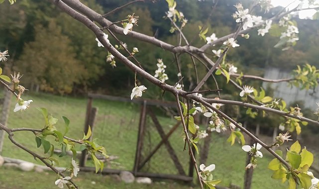Karabük'ün Yenice ilçesinde bir erik ağacının ekim ayının ortasında çiçek açması görenleri şaşırttı.