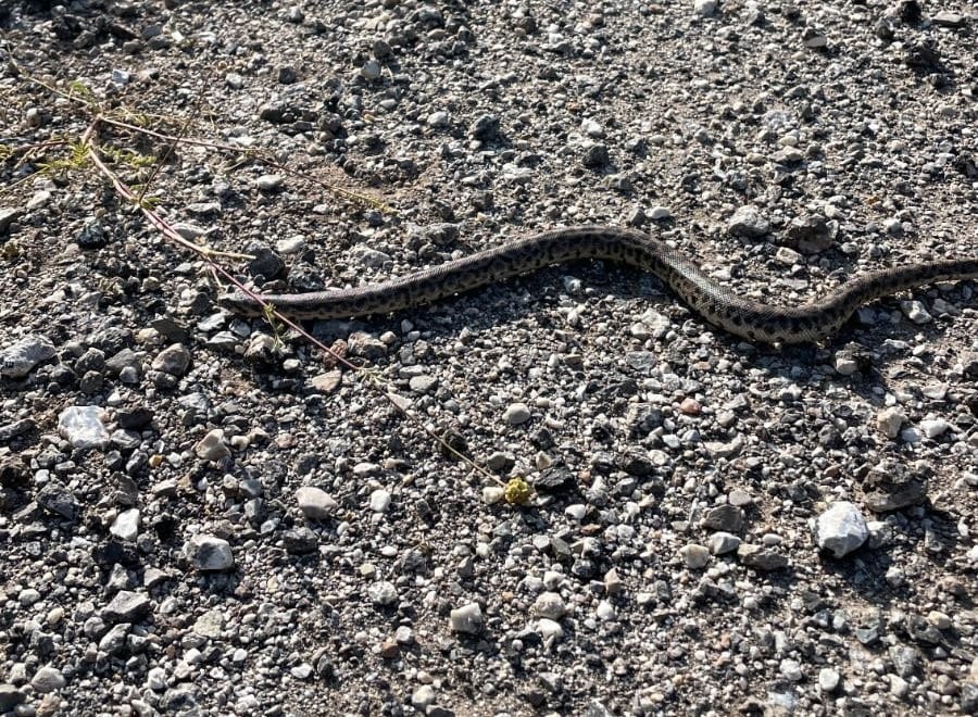 Erzincan'ın Kemah ilçesinde doğa yürüyüşü yapan fotoğraf sanatçısı Emrah Karakoç, yürüyüş sırasında karşılaştığı bir yılanı görüntüledi.
