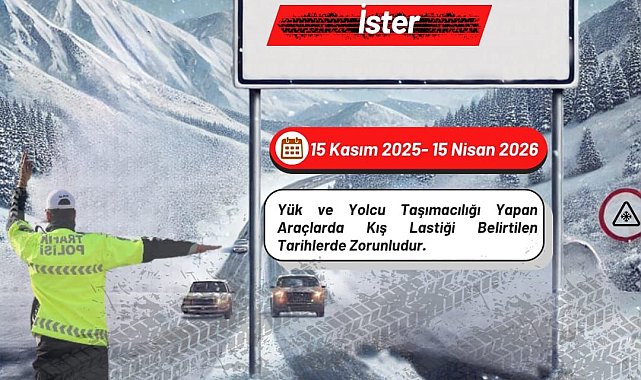 Şehirlerarası kara yollarında yolcu ve eşya taşımacılığında kullanılan ticari taşıtlarda kış lastiği zorunluluğu başladı. Erzurum Emniyet Müdürlüğü sürücüleri kış lastiği konusunda uyardı.Ticari araçlarda zorunlu olan, özel araçlarda ise can ve mal güvenliğiyle sorunsuz seyahat için hayati görülen kış lastiği uygulaması başladı. Uygulama ticari araçlar için 15 Nisan 2026 tarihine kadar 5 aylık dönemde zorunlu olacak. Yapılan denetimlerde, kış lastiği kullanması zorunlu olduğu halde kullanmayan firmalara, bu yıl için 5 bin 856 lira idari para cezası uygulanacak. Erzurum Emniyet Müdürlüğü tarafından yapılan paylaşımda, "Erzurum'un kışı, kış lastiği ister" sloganı kullanılarak şöyle denildi, "15 Kasım 2025 - 15 Nisan 2026 tarihleri arasında yolcu ve yük taşıyan araçlarda kış lastiği belirtilen tarihlerde zorunludur"