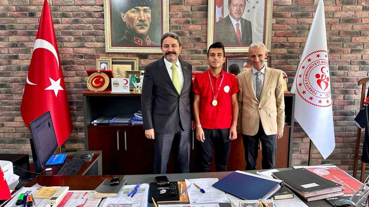 Eskişehirli atlet Okan Yumuk, YURTLİG Türkiye Atletizm Şampiyonası'nda 3000 metre Cross yarışında Türkiye birincisi oldu.Eskişehir Doğan Aslan Bey Yurdu öğrencisi Okan Yumuk, YURTLİG Türkiye Atletizm Şampiyonası 3000 metre Cross yarışında Türkiye birincisi olarak büyük bir başarıya imza attı. Şampiyon sporcu, başarısının ardından İl Gençlik ve Spor Müdürü Hasan Kalın'ı makamında ziyaret etti.Ziyarette İl Müdürü Hasan Kalın, Okan Yumuk'u üstün performansından dolayı tebrik ederek, başarılarının devamını diledi.