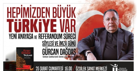 “Hepimizden Büyük Türkiye Var” konulu söyleşiye katılmak için Eskişehir’e gelecek olan Dağdaş, Yeni Anayasa ve Referandum Süreci ile ilgili görüşlerini paylaşacak. Özdilek Sanat Merkezi’nde 25 Şubat Cumartesi günü saat 16.00’da başlayacak olan söyleşiden sonra, bir de kitap imzası gerçekleşecek. Eski Devlet Bakanı Gürcan Dağdaş son olarak Fetret Dönemi Yazıları adlı bir kitap yayınlamıştı. Eskişehir