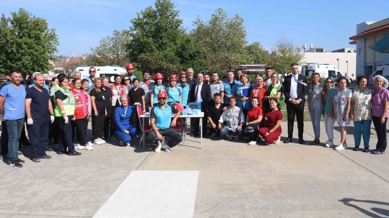 Fethiye Devlet Hastanesi bahçesinde düzenlenen afet ve acil durum tatbikatı, gerçek bir acil durumu aratmadı.