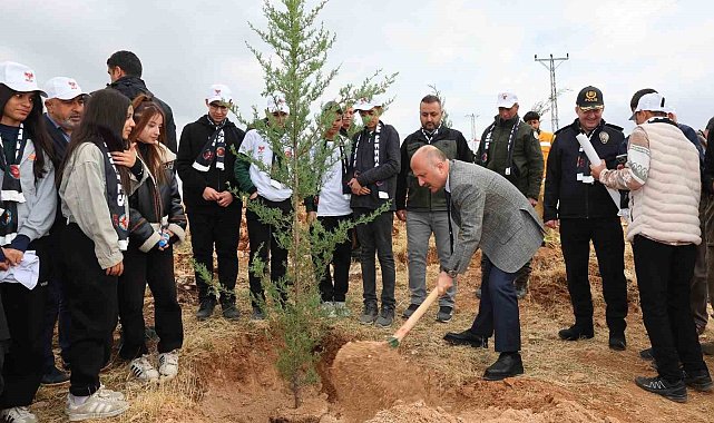 Adıyaman İl Emniyet Müdürlüğü, şehitlerin anısına 150 fidanı toprakla buluşturdu.Adıyaman İl Emniyet Müdürlüğü "Şehitlerimiz İçin Her Bir Fidan, Geleceğimiz İçin Bin Nefes" projesi kapsamında Kayaönü köyünde 150 fidanın dikimi gerçekleştirdi. Adıyaman Valisi Osman Varol da düzenlenen fidan dikim etkinliğine katılarak şehitlerin aziz hatırası için kendi elleriyle fidan dikti.Fidan dikiminde konuşan Adıyaman Valisi Osman Varol, "Her bir fidan, şehidimizin adını yaşatan bir nefes, geleceğe uzanan bir umut dalıdır. Bugün toprakla buluşturduğumuz her fidan, hem aziz şehitlerimize vefamızın nişanesi hem de yarınlara daha yeşil, daha güçlü bir Adıyaman bırakma irademizin bir göstergesidir" dedi.Etkinliğe Vali Osman Varol, İl Emniyet Müdürü Arzum Nazman, şehit yakınları, öğrenciler, kurum yöneticileri ve gönüllüler katılarak fidanlara can suyu verdi.