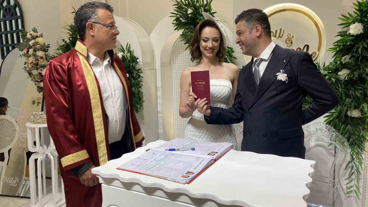 MANİSA – Manisa'nın Alaşehir ilçesinde görev yapan Filistinli Aile Hekimi Dr. Akram Mukat, Türk Kızılay Alaşehir Şubesi'nde Uzman Yardımcısı olarak çalışan Fulya Karataş ile hayatını birleştirdi. Çiftin nikahını Alaşehir Belediye Başkanı Ahmet Öküzcüoğlu kıydı.Kızılay'ın Filistin için gerçekleştirdiği yardım faaliyetlerinde gönüllü olarak görev Filistinli doktor Akram Mukat, gönlünü kaptırdığı Türk Kızılay Alaşehir Şubesi'nde görevli Uzman Yardımcısı Fulya Karataş ile dünyaevine girdi. Nikah töreni, ilçedeki bir düğün salonunda Alaşehir Belediye Başkanı Ahmet Öküzcüoğlu tarafından kıyıldı. Çiftin nikah şahitliklerini Mehmet-Azime Dönmez Türkmen çifti, Nurcan Sezgin ve Melek Peköz yaptı. Kız isteme merasimini ise Avukat Veysel Türkmen ve eşi Serpil Türkmen gerçekleştirdi.Törende evlilik cüzdanını teslim eden Başkan Öküzcüoğlu, "Evlilik hayatına ilk adımı attınız. Bundan sonra hayatınızın her adımını birlikte atacaksınız. Benim size tavsiyem, birbirinizi sınırsızca sevin, saygılı ve hoşgörülü olun. Mutluluk, karşınızdaki eşinizi mutlu etmekle başlar. Sizlere yaşam boyu mutluluklar diliyorum" dedi."Gönüllülük, gönül bağımıza dönüştü"Dr. Akram Mukat, 2006 yılında Türkiye'ye geldiğini ve Ege Üniversitesi Tıp Fakültesi'nden mezun olduktan sonra 2023 yılında Alaşehir Devlet Hastanesi'ne atandığını belirtti. Kızılay'ın Filistin için gerçekleştirdiği yardım faaliyetlerinde gönüllü olarak görev aldığını ifade eden Mukat, "Orada ruh ikizimle tanıştım. Bu gönüllülük, gönül bağımıza dönüştü. Çok mutluyuz. İnşallah bu acıların içinde güzel ve huzurlu bir yuva kuracağız" dedi.Fulya Karataş ise "Akram'la Kızılay'da yürüttüğümüz gönüllü faaliyetlerde tanıştık. Aramızda çok güzel bir bağ oluştu. Bu güzel gönül bağını evliliğe taşımaya karar verdik. Yanımda olduğu için çok mutluyum, kendisine çok teşekkür ediyorum" ifadelerini kullandı.