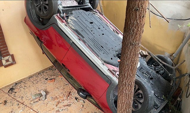 Fren yerine gaza basan sürücü bahçeye uçtu