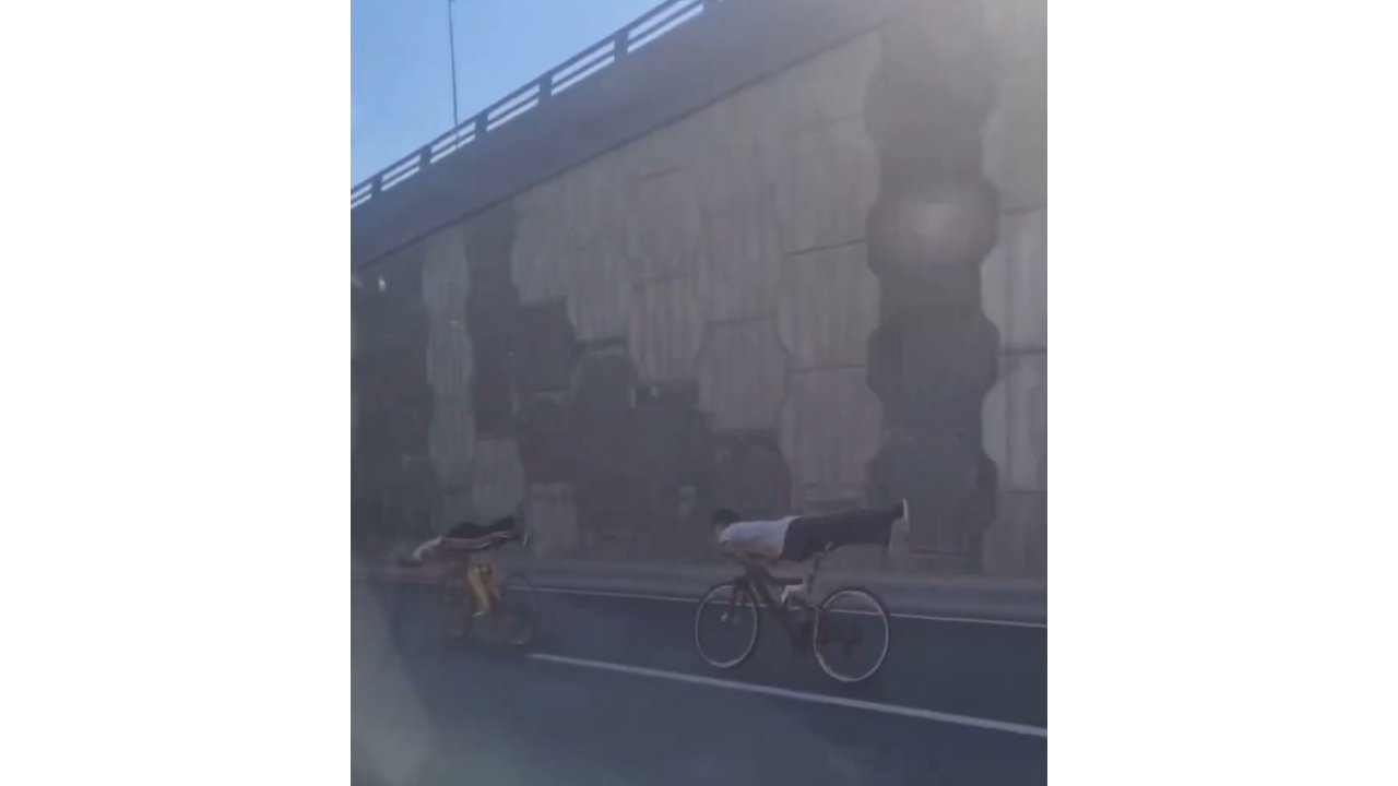 Gaziantep'te trafikte akrobatik hareketler yapan gençler, sürücüleri korkuturken hem kendi canlarını hem de diğer vatandaşların güvenliğini tehlikeye attı.Gaziantep'te 3 genç, bisikletleriyle İpek Yolu üzerinde akrobatik hareketler yaparak hem kendi canlarını hem de diğer sürücülerin canlarını tehlikeye soktu. Vatandaşlar, gençlerin bisiklet üzerindeki performanslarını cep telefonlarıyla kaydetti.