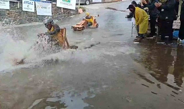 Geleneksel tahta araba yarışlarına yağmur da engel olamadı