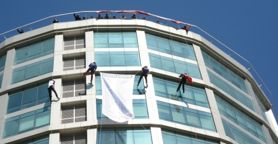 Aksaray’da şehitler anısına bir etkinlik düzenleyen AFAD ekipleri, özel bir alışveriş merkezinin 50 metrelik yükseklikteki çatısından dağcı inişi yaptı.Aksaray’da Acil Afet Durum Müdürlüğü (AFAD) ekipleri, tüm şehitlerin anısına özel bir alışveriş merkezinin 50 metrelik yüksekteki çatısından dağcı inişi yaptı. Şehir merkezinde bulunan alışveriş merkezinin 50 metre yükseklikteki çatısına çıkan AFAD ekipleri, şehitlerin isimleri yazılı pankartla aşağıya indi. Vatandaşlar tarafından hayranlıkla izlenen AFAD ekipleri başarılı bir şekilde iniş yaparken, inişin ardından alışveriş merkezine dev Türk bayrağı asıldı.AFAD Müdürü Cezmi Türkmen, inişin şehitler anısına yapıldığını belirterek, “Burada bugüne kadar şehit olan hem askerlerimiz, hem polislerimiz ve hem de 15 Temmuz’daki demokrasi şehitlerimizin anısına bir program düzenledik. Bu programda istedik ki şehitlerimizi analım. Onları sevgi, rahmet ve minnetle anmak istiyoruz. O yüzden burada 11 kişilik AFAD’a bağlı dağ arama kurtarma ekibiyle bir program düzenledik. Burada dağcı arkadaşlarımız teknik bir iniş yaparak şehitlerimizin anısına bir iniş yapmış olacağız. Vatanımız uğruna gözünü kırpmadan şehadete yürüyen şehitlerimizi rahmet ve minnetle bu programla anmış olacağız” dedi.