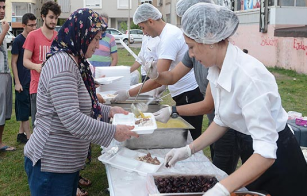 Antalya - Mersin yöresine ait türkülerin söylendiği gecede halk oyunları gösterisi de sahnelendi. Özellikle kaşıkla oynanan Silifke yöresine ait halk oyunları büyük alkış aldı.Büyükşehir Belediyesi’nin geleneksel hale getirdiği Ramazan etkinlikleri kapsamında Karaalioğlu Parkı içerisinde düzenlenen farklı etkinlikler her akşam vatandaşları buluşturmaya devam ediyor. Aileleriyle birlikte iftar sonrası etkinlik alanına gelen vatandaşlar keyifli Ramazan akşamları yaşıyor. Yöresel gecelerde farklı kültürler tanıtılıyor.SİLİFKE KAŞIK OYUNU ALKIŞ ALDIAntalya’da Ramazan’ın kalbinin attığı yer olan Karaalioğlu Parkı’ndaki yöresel gecelerde bu kez Mersinliler ağırlandı. Vatandaşların büyük ilgi gösterdiği Mersinliler gecesinde yöresel türküler söylendi ve halk oyunu gösterileri sahnelendi. Sanatçı Ümran Gülcan’ın sahne aldığı konserde Silifke’nin Yoğurdu, Anamur Yolları, Keklik gibi sevilen türküler seslendirildi. Yöresel kıyafetleri ile sahne alan halk oyunları ekibinin kaşıkla oynadıkları Silifke yöresi oyunları büyük alkış aldı.RAMAZAN BEREKETİ SOFRALARDABüyükşehir Belediyesi mahallelerde verdiği iftar yemekleri ile Ramazan’ın bereketini paylaşıyor. Ramazanı dolu dolu karşılayan Büyükşehir Belediyesi her gün ayrı bir mahallede kurulan iftar sofraları ile vatandaşları aynı sofrada buluşturuyor. Son olarak Kepez İlçesi Dokuma Yeşiltepe Mahallesi’nde iftar sofrası kuruldu. İftar sofrasına mahalle sakinlerinin ilgisi yoğun oldu. Dakikalar öncesinden kuyruğa giren 7’den 70’e vatandaş, hep birlikte ezanın okunmasını bekledi. Okunan duaların ardından vatandaşlar hep birlikte oruçlarını açarken, aynı sofrayı paylaşmanın huzurunu yaşadı.