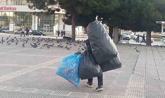 Samsun Cumhuriyet Meydanı'nda, geri dönüşüm malzemeleriyle dolu dev torbaları sırtlayarak yürüyen yaşlı vatandaşın görüntüsü, hayat mücadelesinin görünmez yüzünü bir kez daha ortaya koydu.