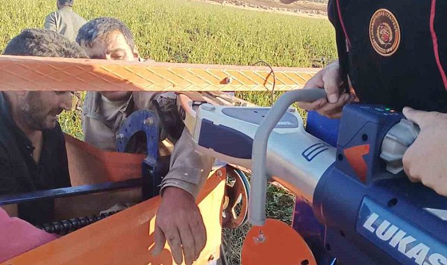 Kahramanmaraş'ta tarlada çalışırken kolu hortum sarma makinesine sıkışan bir kişi itfaiye ekipleri tarafından kurtarıldı.
